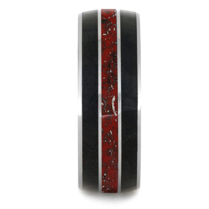 Red and Black Men's Wedding Band with Stardust™ & Jade
