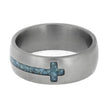 Discover a stunning showcase of faith when you wear this elegant Kingman turquoise cross ring. The intricate two cross design is set against a lightweight titanium band, showcasing the purity and simplicity of this organic piece of faith jewelry.