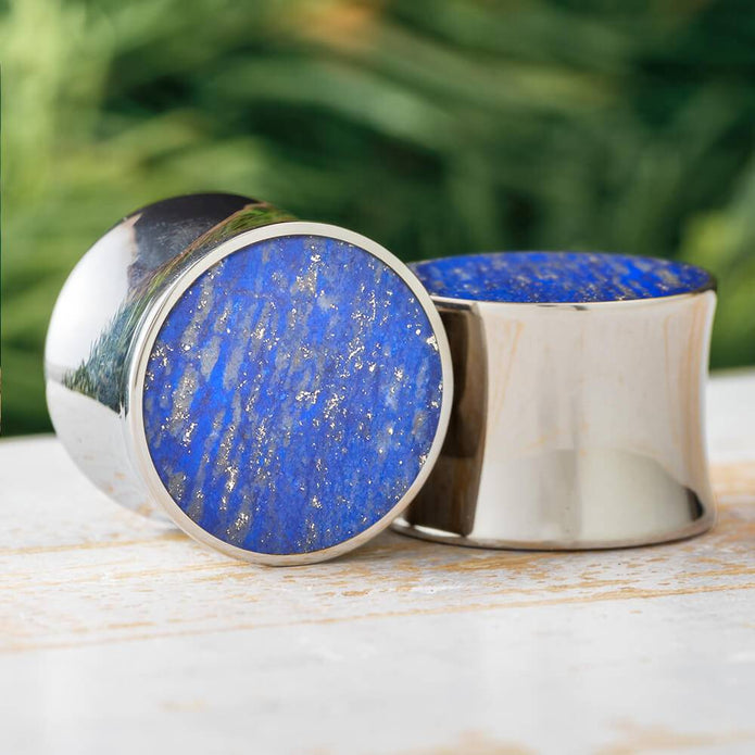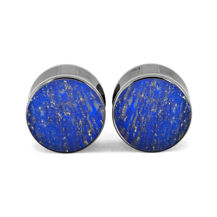 Lapis Lazuli Ear Gauges, Blue Titanium Plugs