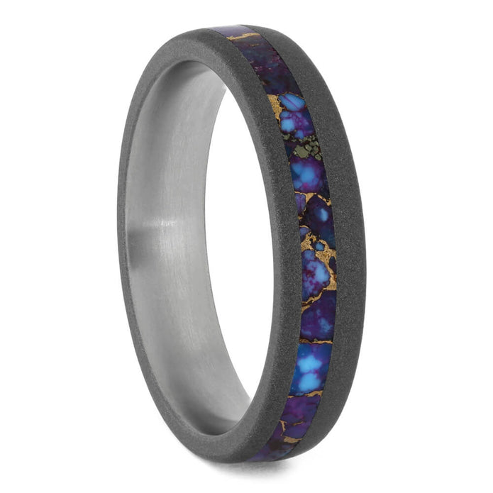 Lava Mosaic Turquoise Wedding Band in Sandblasted Titanium