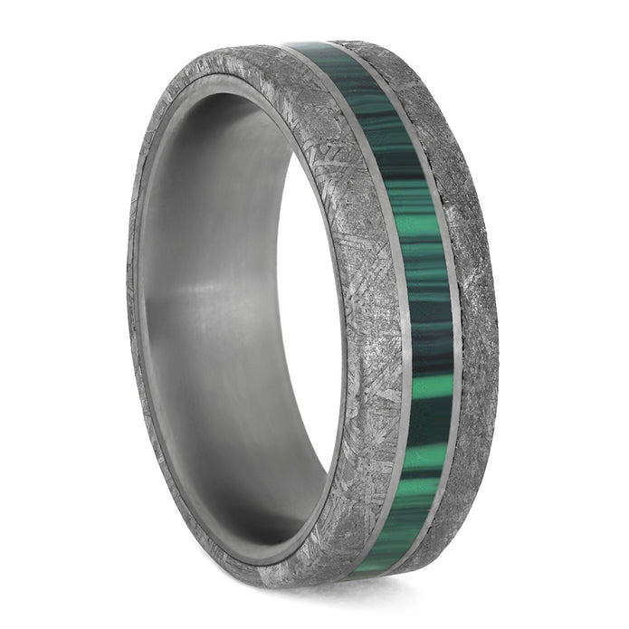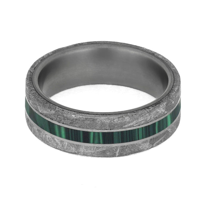 Materials in Malachite Men's Ring With Meteorite Inlay in Titanium Wedding Band, 7mm