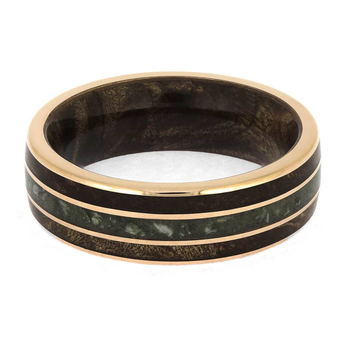 Materials in Maple Burl and Green Jade Ring in Solid Gold