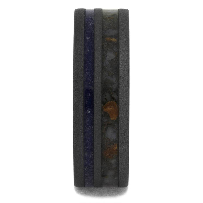 Men's Wedding Band with Dinosaur Bone & Sea Glass