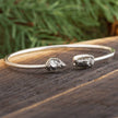 Adjustable and fashionable, this cuff bracelet features a pair of Campo del Cielo meteorite nuggets bezel-set in silver. The metal is pliable enough that you can bend it to fit your wrist, making this a "one size fits most" item. This stellar meteorite bracelet is in stock and ships in 1-3 days!