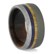 Men's Meteorite and Hardwood Wedding Band with Lapis Lazuli