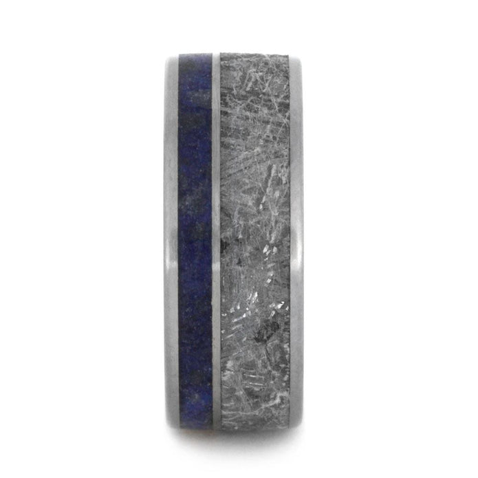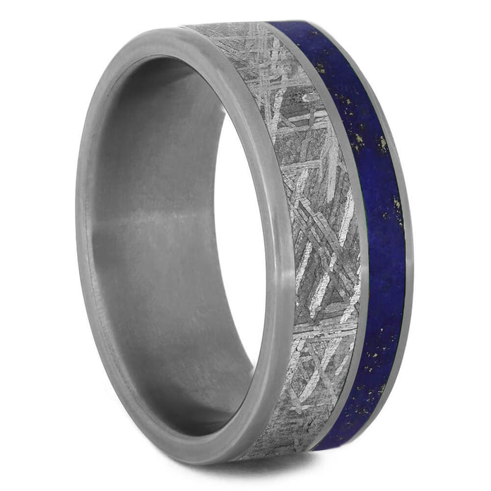 Materials in Meteorite Men's Wedding Band with Lapis Lazuli in Titanium Ring