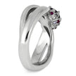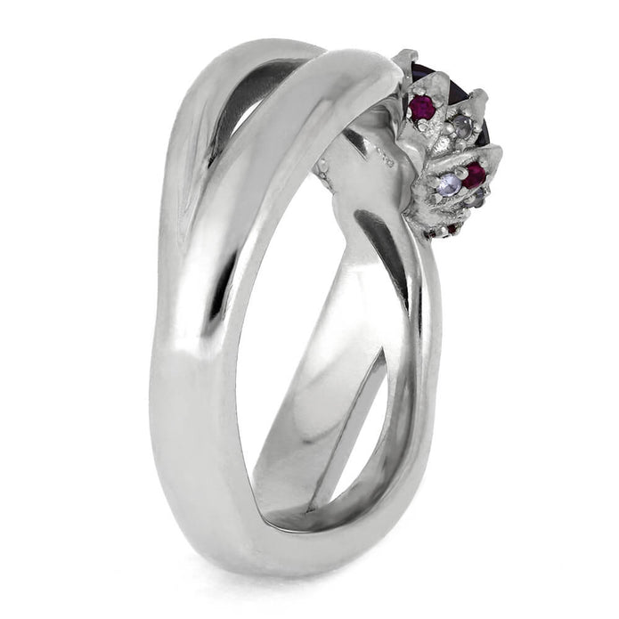 This Platinum Twist Engagement Ring contains a unique twist design, setting it apart from traditional engagement rings. The floral setting holds a sparkling Alexandrite birthstone, making it an elegant and luxurious choice. Crafted from durable platinum, this ring will bring lasting beauty to your special moment.