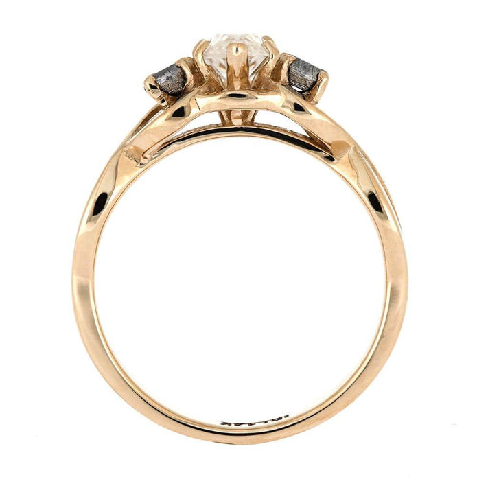 Rose Gold Engagement Ring with Marquise Moissanite and Meteorite Stones