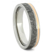 Show off a space-inspired style with this stellar rose gold wedding ring set. Featuring matching 14k rose gold and meteorite details, these rings are sure to draw attention. An iridescent moonstone sparkles at the top of the meteorite engagement ring, while a pinstripe of coordinating gold adds a splash of color to the titanium wedding band.