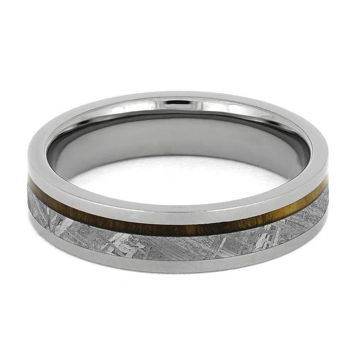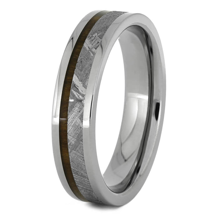 Materials in Titanium Wedding Band With Meteorite & Wood