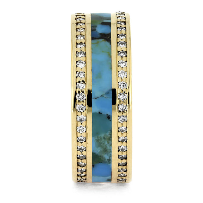 Turquoise Wedding Band, Diamond Eternity Ring in Gold