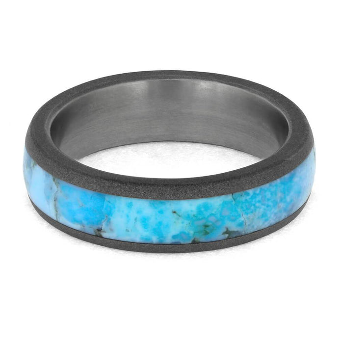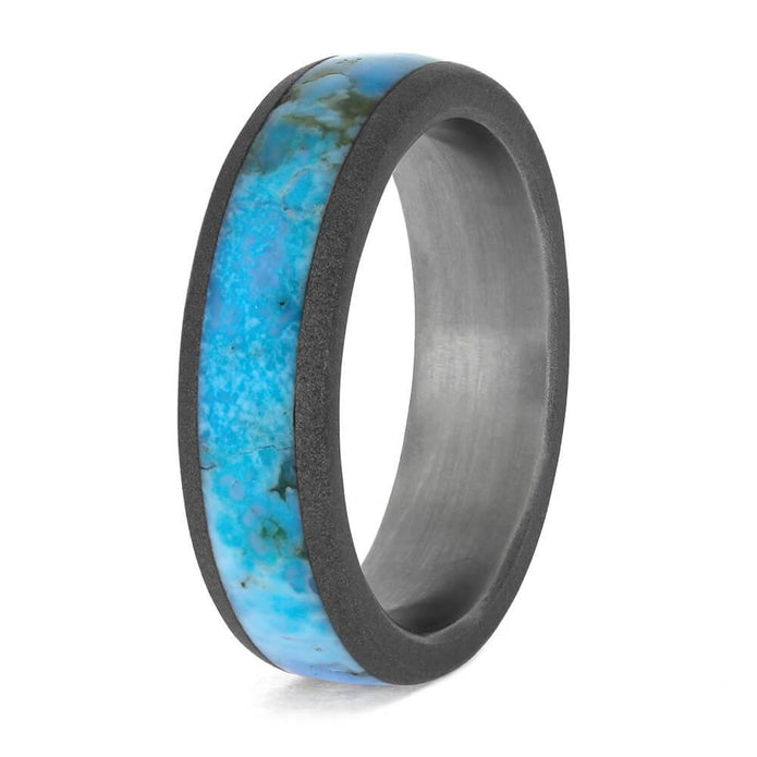 Materials in Turquoise Wedding Band in Sandblasted Titanium