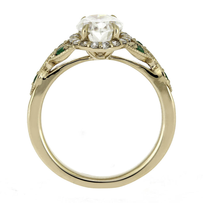 Materials in Vintage Style Engagement Ring with Moissanite Halo and Emeralds