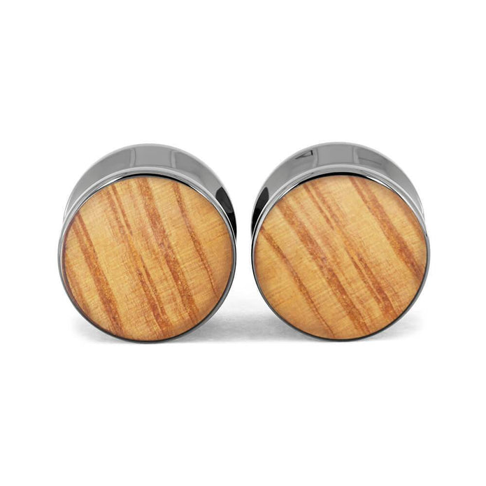 Whiskey Barrel Oak Wood Ear Gauges, Titanium Plugs
