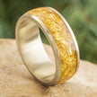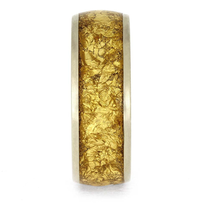 Materials in White and Yellow Gold Wedding Band for Men with Foil Inlay