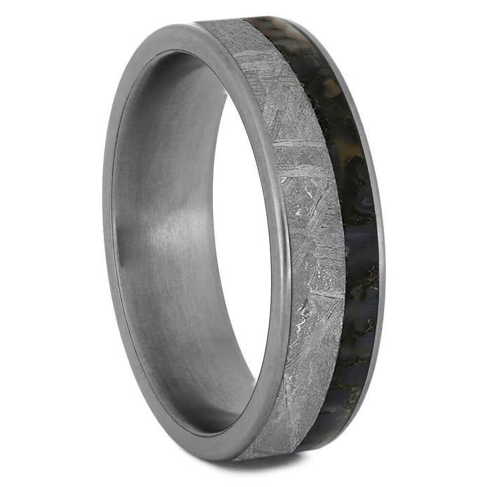 Materials in Dinosaur Bone Men's Ring With Meteorite And Titanium Edges