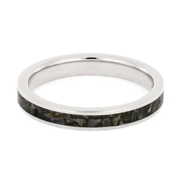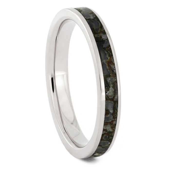 Choose a style that's sure to stand the test of time with this narrow fossil ring. Every specimen of gembone is one-of-a-kind and color and pattern varies. Select your own dinosaur bone sample for a uniquely customized look.