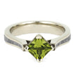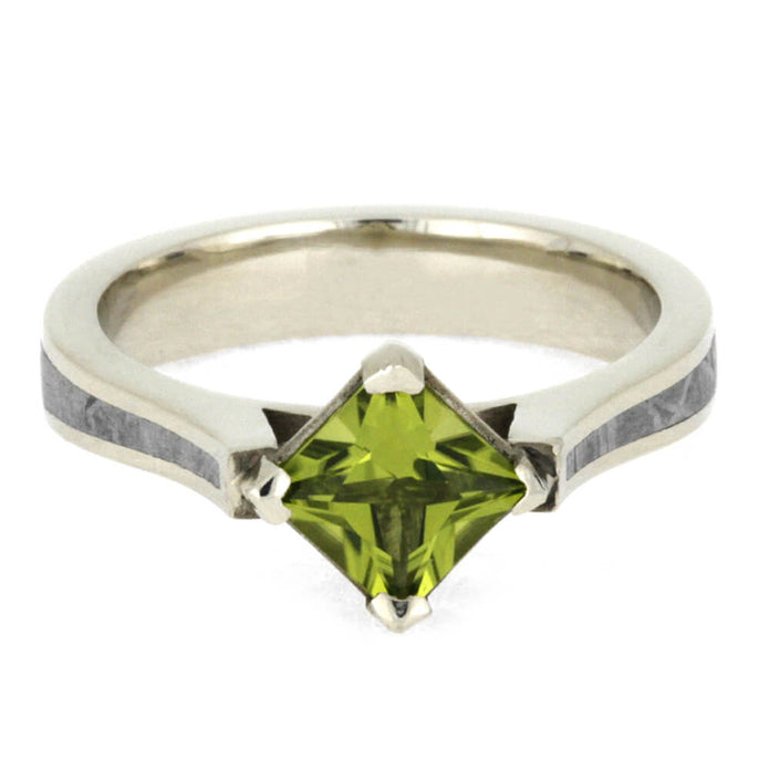 Princess-Cut Peridot & Meteorite Engagement Ring