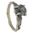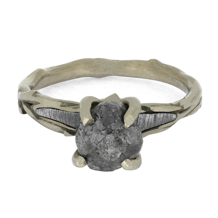 Rough Diamond Engagement Ring With Branch Style Band Inlaid With Meteorite