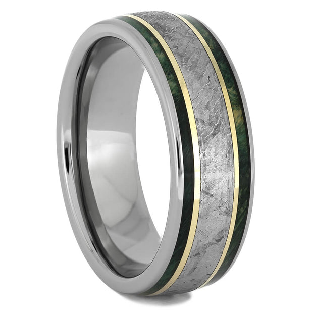 • Wood: A variety of woods are used in these rings. Popular choices include oak, walnut, and ebony, each offering its own unique grain pattern and color tone.