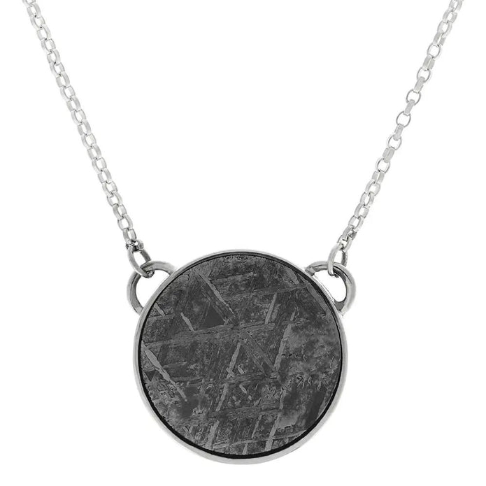 A classic necklace design with a stellar twist! This Gibeon meteorite pendant is about the size of a dime and set inside of a silver bezel. With polished sterling silver, this out-of-this-world pendant will add some shine to your style.