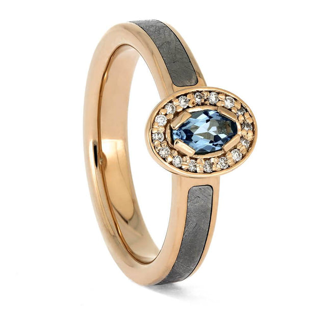 Aquamarine and Rose Gold Solitaire With Meteorite