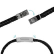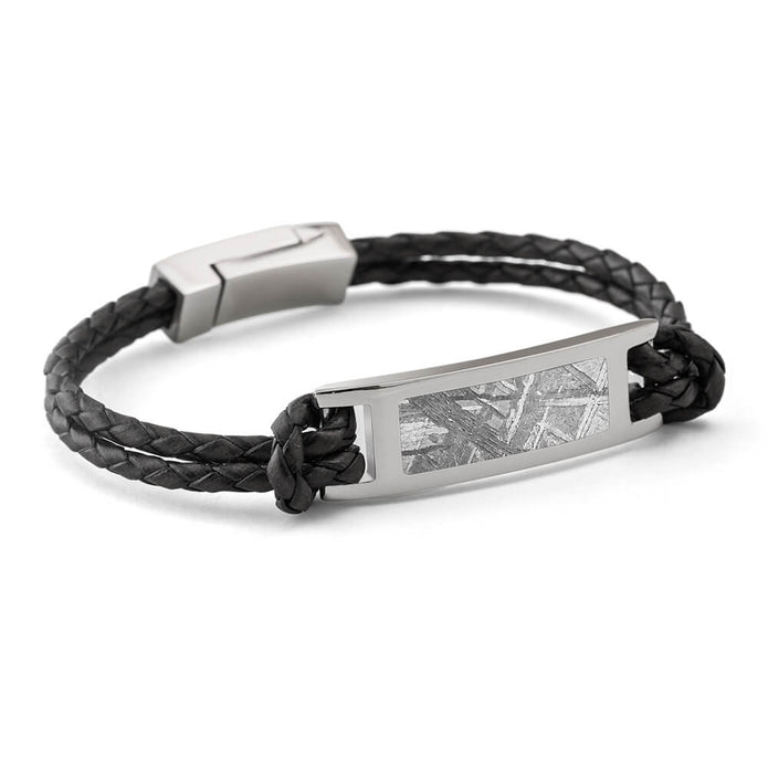 Wear a slice of the stars with this handmade, authentic, meteorite bracelet. The stainless steel and meteorite centerpiece is secured with a masculine braided cord in black leather and closes with a magnetic locking clasp. The natural patterns in the Gibeon meteorite inlay contrasts perfectly with the polished stainless steel and rugged leather. This handmade meteorite jewelry is the perfect gift for the outdoorsy space enthusiast in your life!