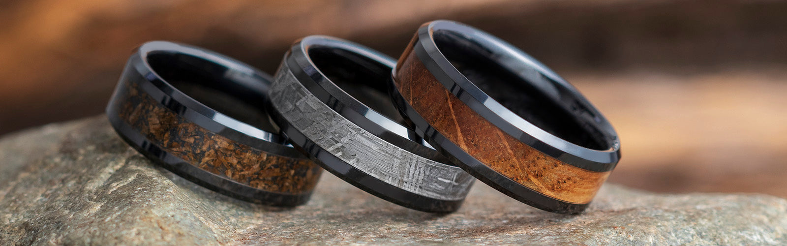 From authentic meteorite to stunning, midnight-sky Kingman turquoise engagement rings, we have the perfect inlay for your wedding bands.