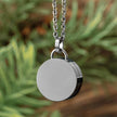 This circular cremation necklace offers a poignant way to honor a cherished individual every day. The uncomplicated design holds ashes and symbolizes enduring remembrance. Personalize with an optional engraving.