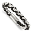 Show off your edgy style with this unique combination of black and white - black leather and polished stainless steel.