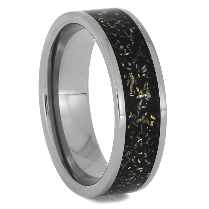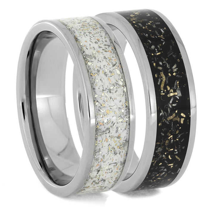 Materials in Black & White Stardust™ Titanium Wedding Band Set