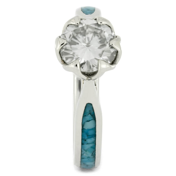 Moissanite Platinum Engagement Ring with Crushed Turquoise