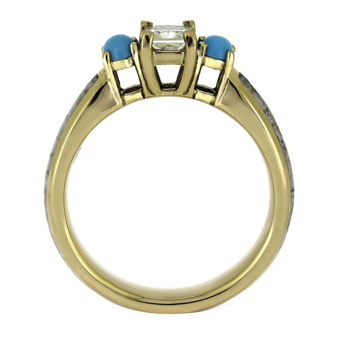 Materials in Gold Three Stone Engagement Ring With Antler & Turquoise