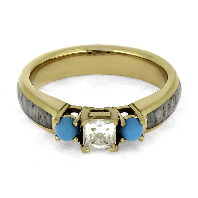 Gold Three Stone Engagement Ring With Antler & Turquoise