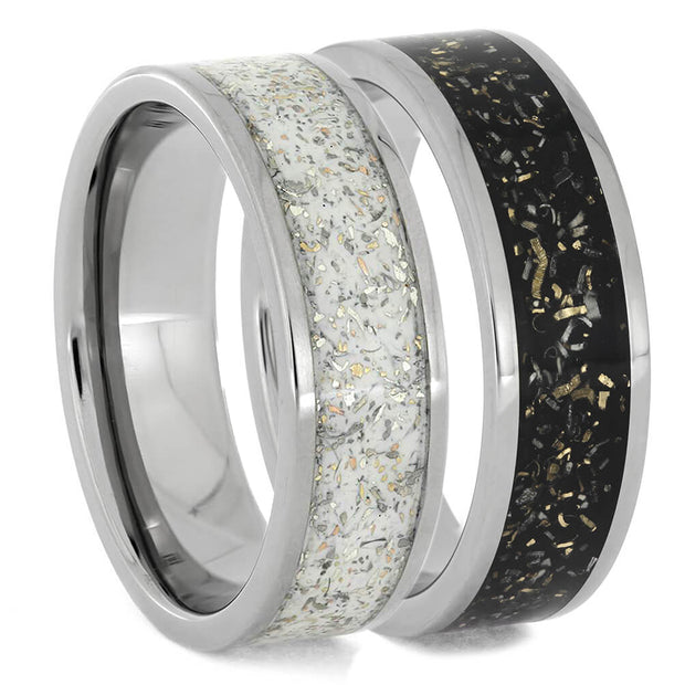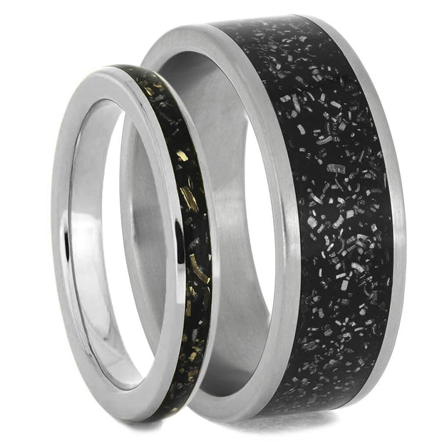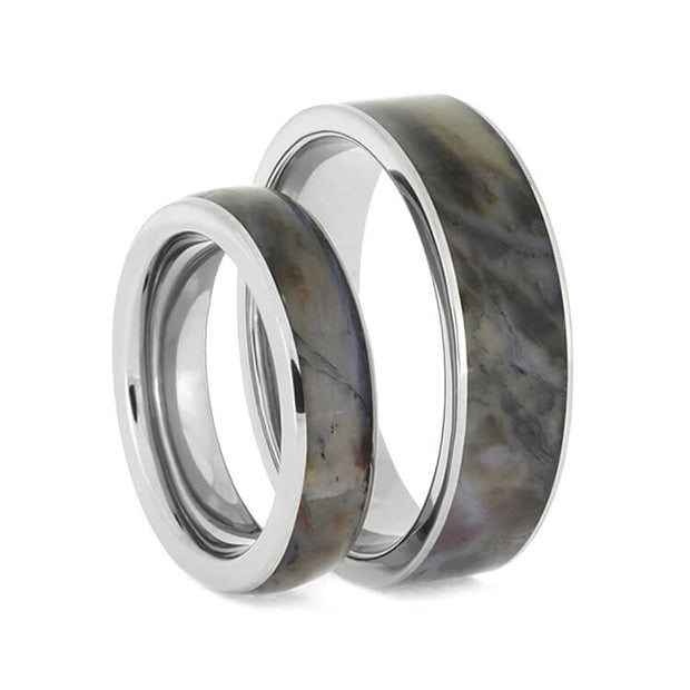 Dive into the world of bespoke artistry with our unique Matching Wedding Ring Sets by Jewelry by Johan. These exquisite sets are meticulously handcrafted, showcasing our designers' exceptional skill in blending organic elements and modern design. Perfect for couples seeking a harmonious blend of nature and craftsmanship, these rings symbolize unity and everlasting love. Explore options like Meteorite Wedding Ring Sets, Wood Wedding Ring Sets, or Titanium Wedding Ring Sets to find the perfect set for your love story.