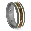 Expertly crafted from a combination of titanium, white gold, moissanites, and olive wood, this Eternity Band by Jewelry by Johan boasts a stunning blend of hues and textures, enhanced by a sandblasted and polished finish. Contact us to explore additional gemstone options to personalize and create a one-of-a-kind look.