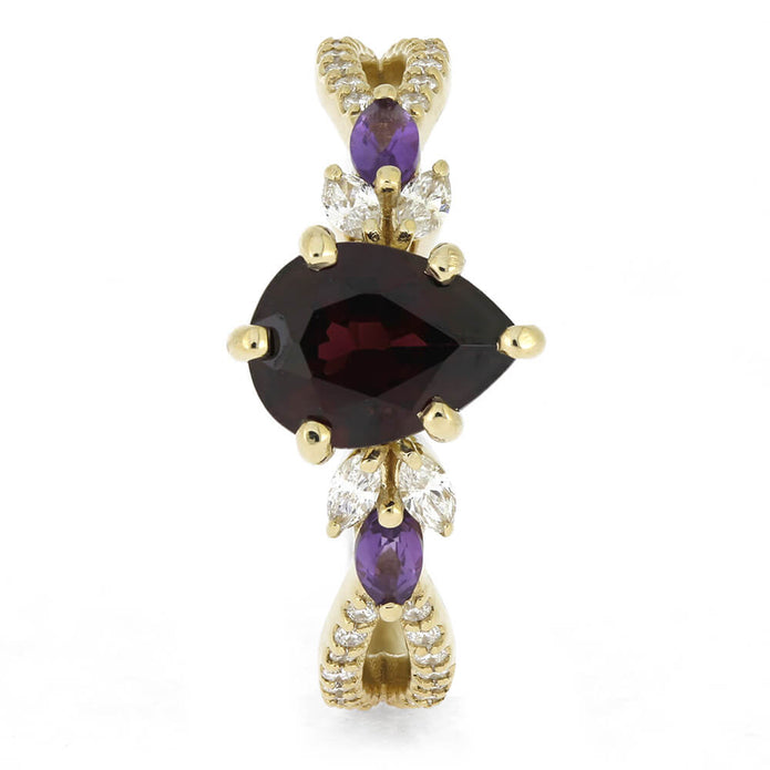 • Materials: Garnet, Amethyst, Diamond, and Yellow Gold