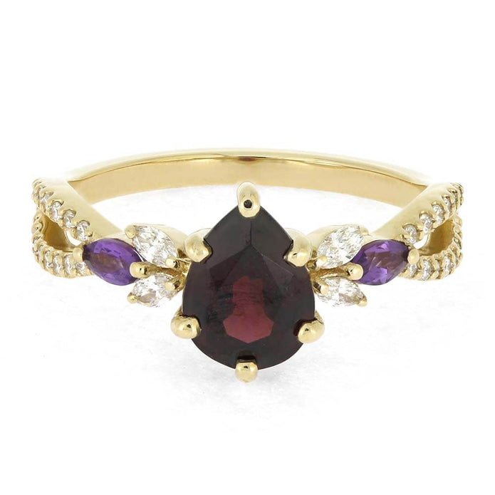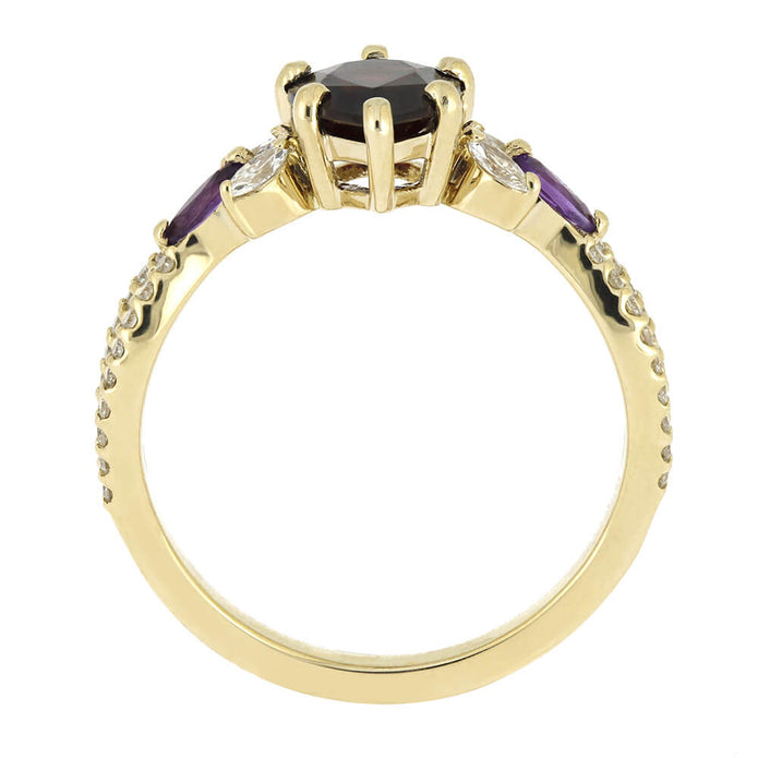 Garnet Engagement Ring with Amethyst and Diamond Accents