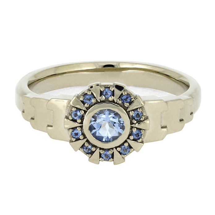 Iron Man Ring With Aquamarine Arc Reactor in 14k White Gold
