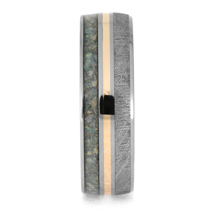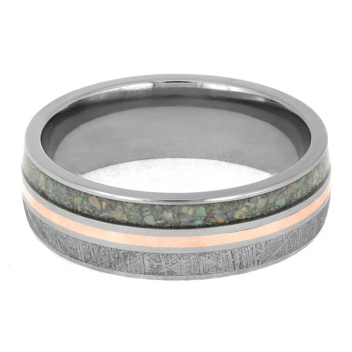 Materials in Opal and Meteorite Ring with Rose Gold Pinstripe
