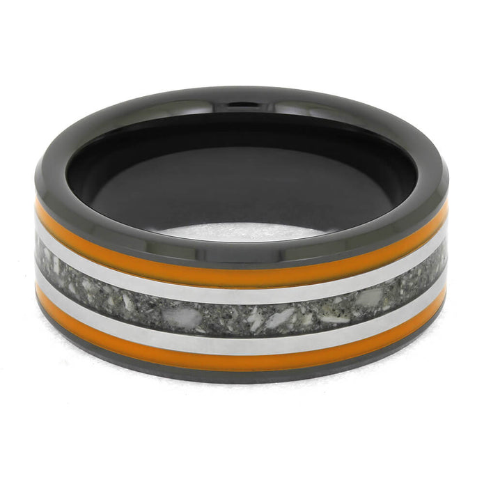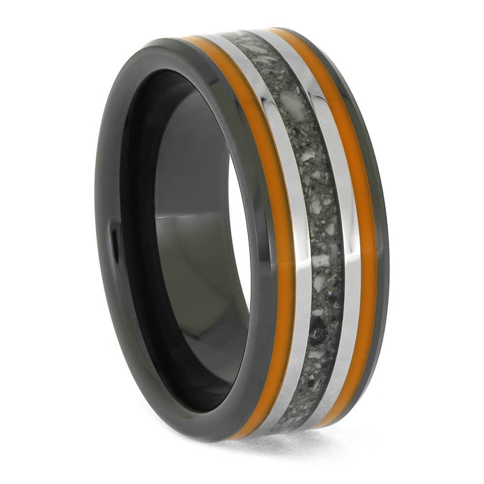 Materials in Orange Memorial Ring with Enamel and Black Ceramic