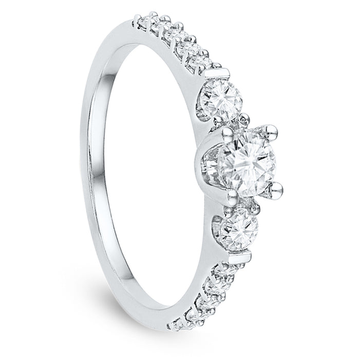 When you ask the person you love to spend the rest of your life together, present her with this brilliant three stone diamond engagement ring. This engagement ring has 3/4 carat total weight of diamonds and is available in sterling silver.