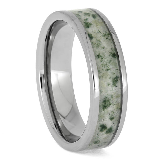 Moss Agate is frequently used in men's and women's rings, with its organic patterns often paired with woods, antlers, or meteorite for a one-of-a-kind look. It is also popular for engagement rings and wedding bands, especially for those seeking an alternative to traditional gemstones. The stunning green inclusions offer a natural yet luxurious appeal that pairs beautifully with titanium, gold, or platinum.