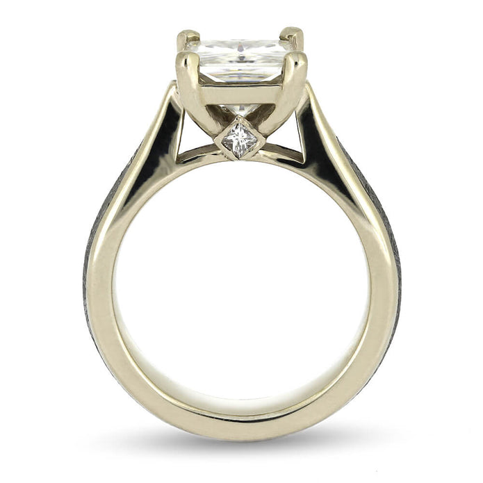 Make a statement with this alternative engagement ring that is sure to turn heads. Crafted with a square cut solitaire moissanite accented with meteorite.