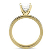 Enhance your engagement with a celestial twist! Showcasing a piece of the cosmos, this yellow gold solitaire boasts a breathtaking meteorite inlay and a brilliant 2 carat round diamond. The natural patterns of the Gibeon meteorite brings a one-of-a-kind element to this traditional engagement ring design.