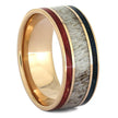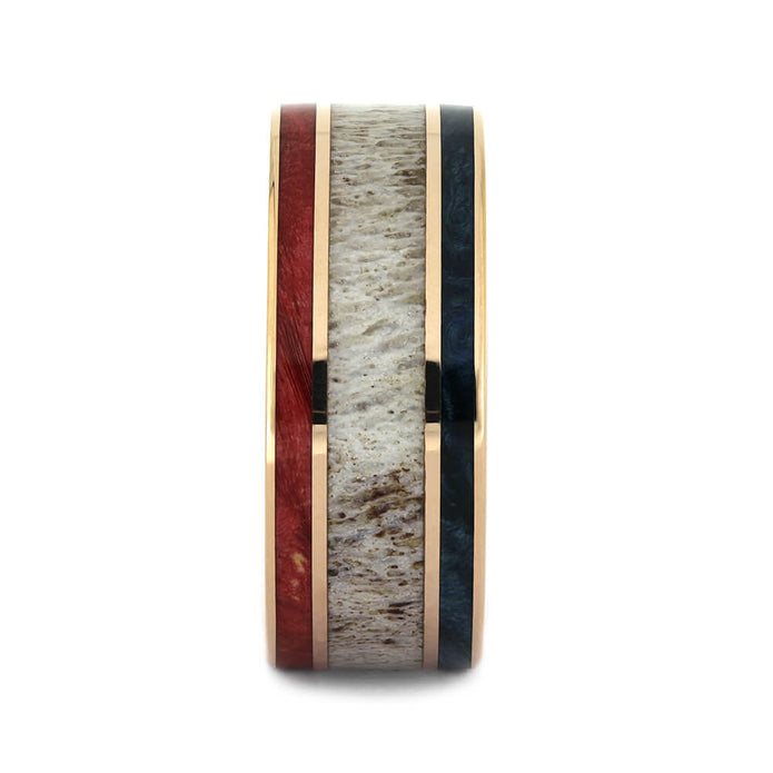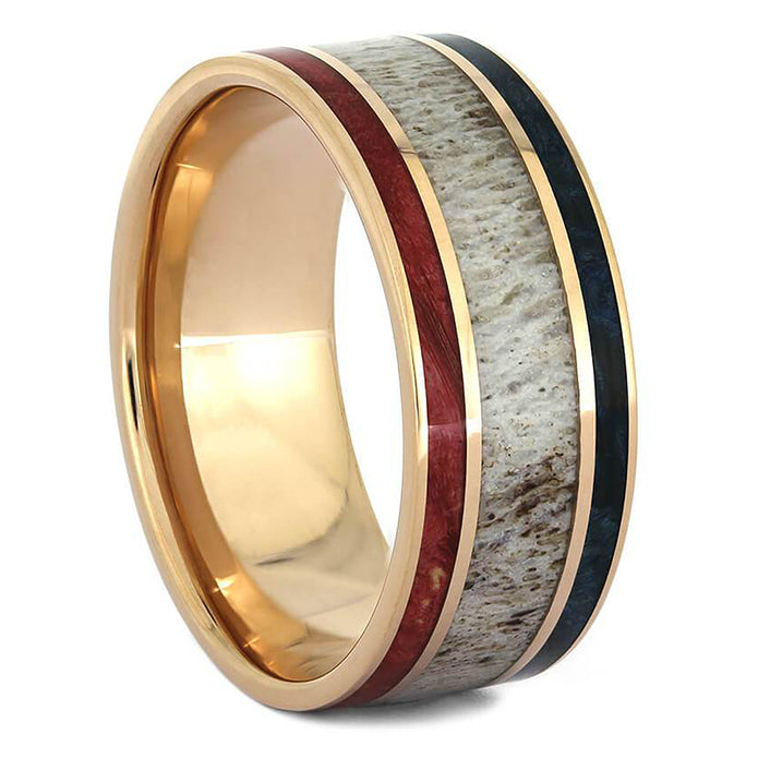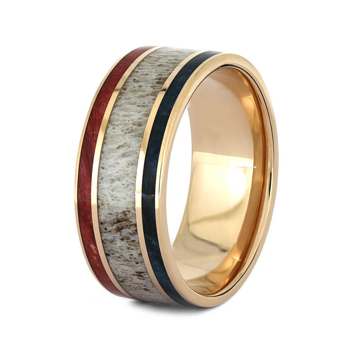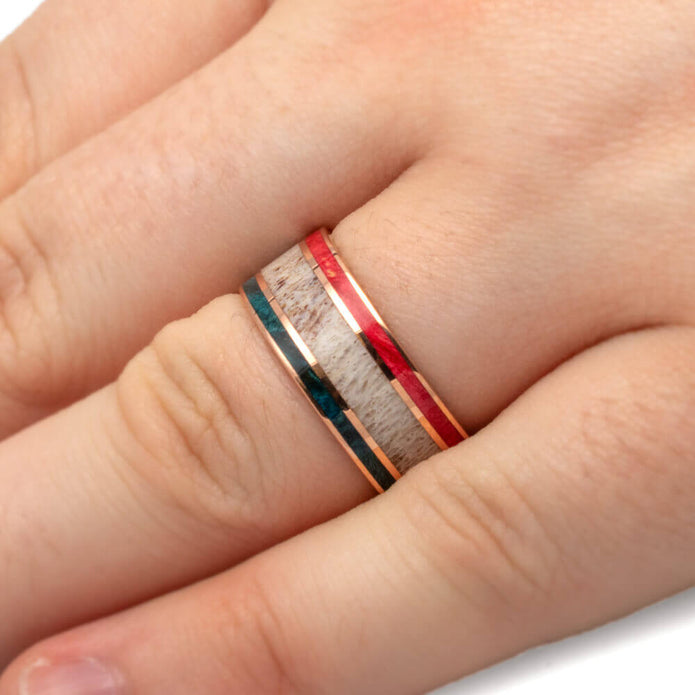 Materials in Red & Blue Box Elder Wood Wedding Band with Deer Antler