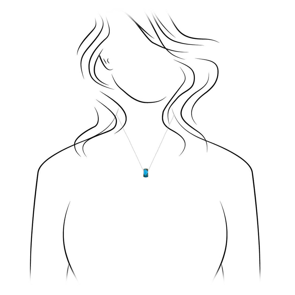 Stunning blue turquoise is the center piece of this beautiful sterling silver charm bead necklace. It comes with an 18″ sterling silver chain and is made ready to wear to your next social outing.