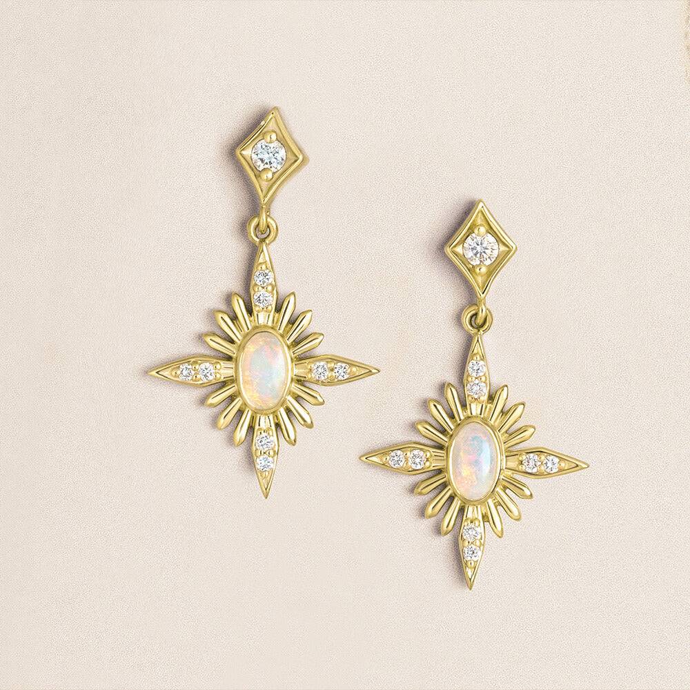 Celestial Dangle Earrings with Natural Opal