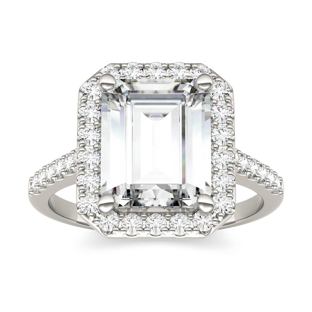 Charles & Colvard Emerald Cut Moissanite Halo Ring in White Gold