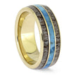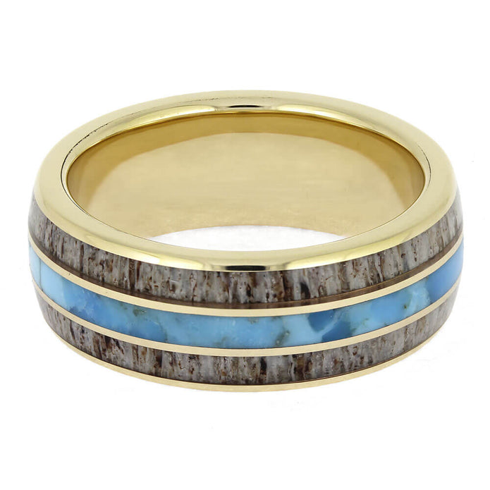 Custom Gold Wedding Band with Turquoise and Antler Inlays